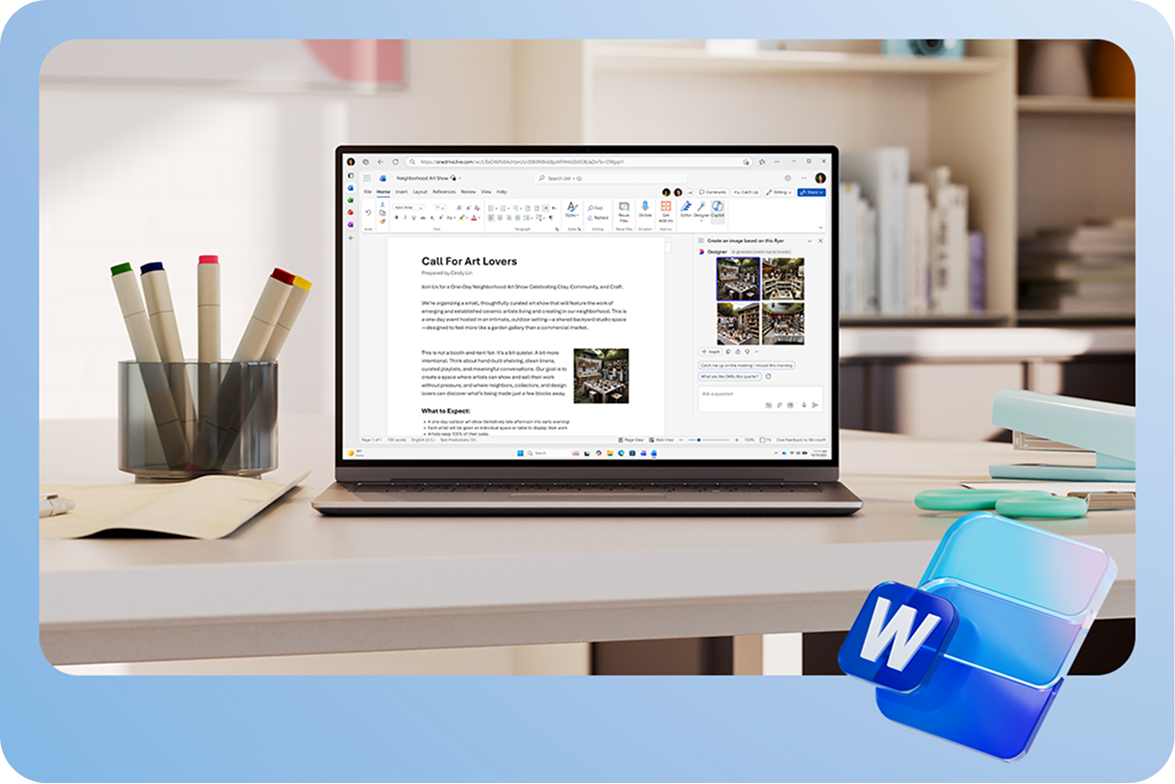 Мәтін жазу кезіндегі қиындықтарды өткеру және өз ойларыңыз бен идеяларыңызды сенімді түрде бөлісу үшін Copilot қызметін тікелей Word қолданбасында пайдаланыңыз.
