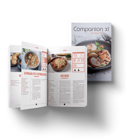 Готовьте соусы, выпечку завтраки,закуски, супы, основные блюда, десерты и напитки — в книге вы найдете идеи аппетитных блюд для каждой программы.