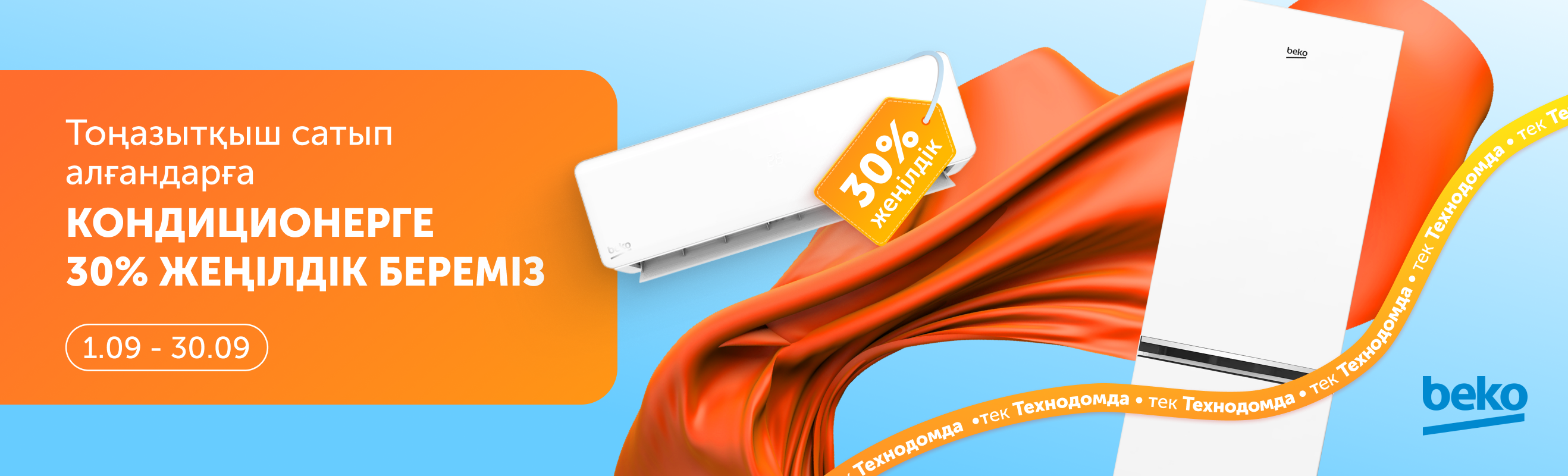 1 қыркүйектен 30 қыркүйекке дейін BEKO тоңазытқышын сатып алсаңыз — кондиционерге 30% жеңілдік береміз!